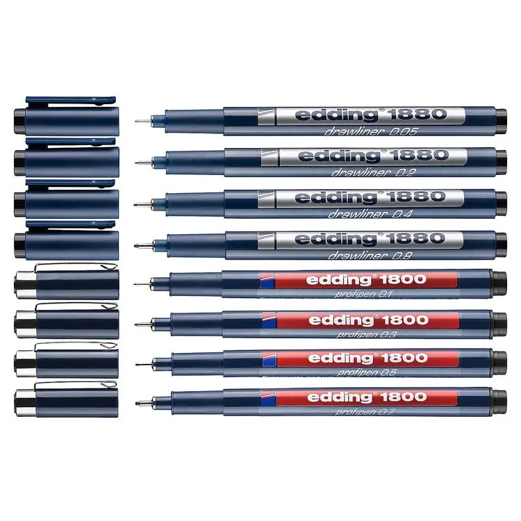 Edding 1800-1880 Teknik Çizim Kalemi 8'li Set SİYAH (0.05 - 0.1 - 0.2 - 0.3 - 0.4 - 0.5 - 0.7 - 0.8)